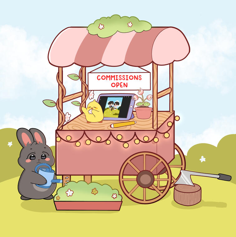 All commissions come with a simple background by default (flat color, gradient, or basic shapes).If you want a detailed background, there will be additional costs depending on complexity.